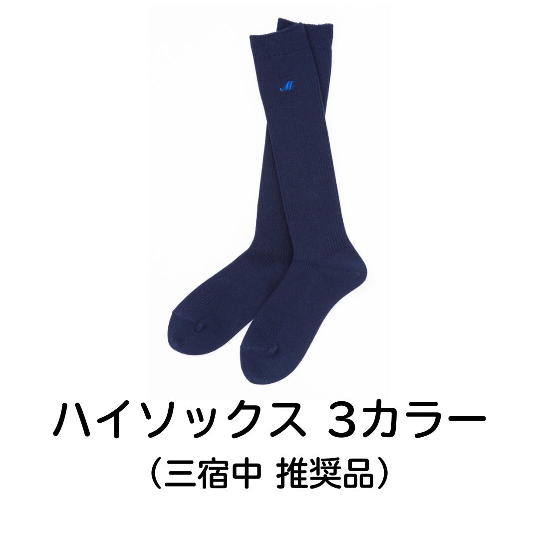 三宿中学校の「M」の刺繍が入ったハイソックス(ひざ下丈靴下)です。