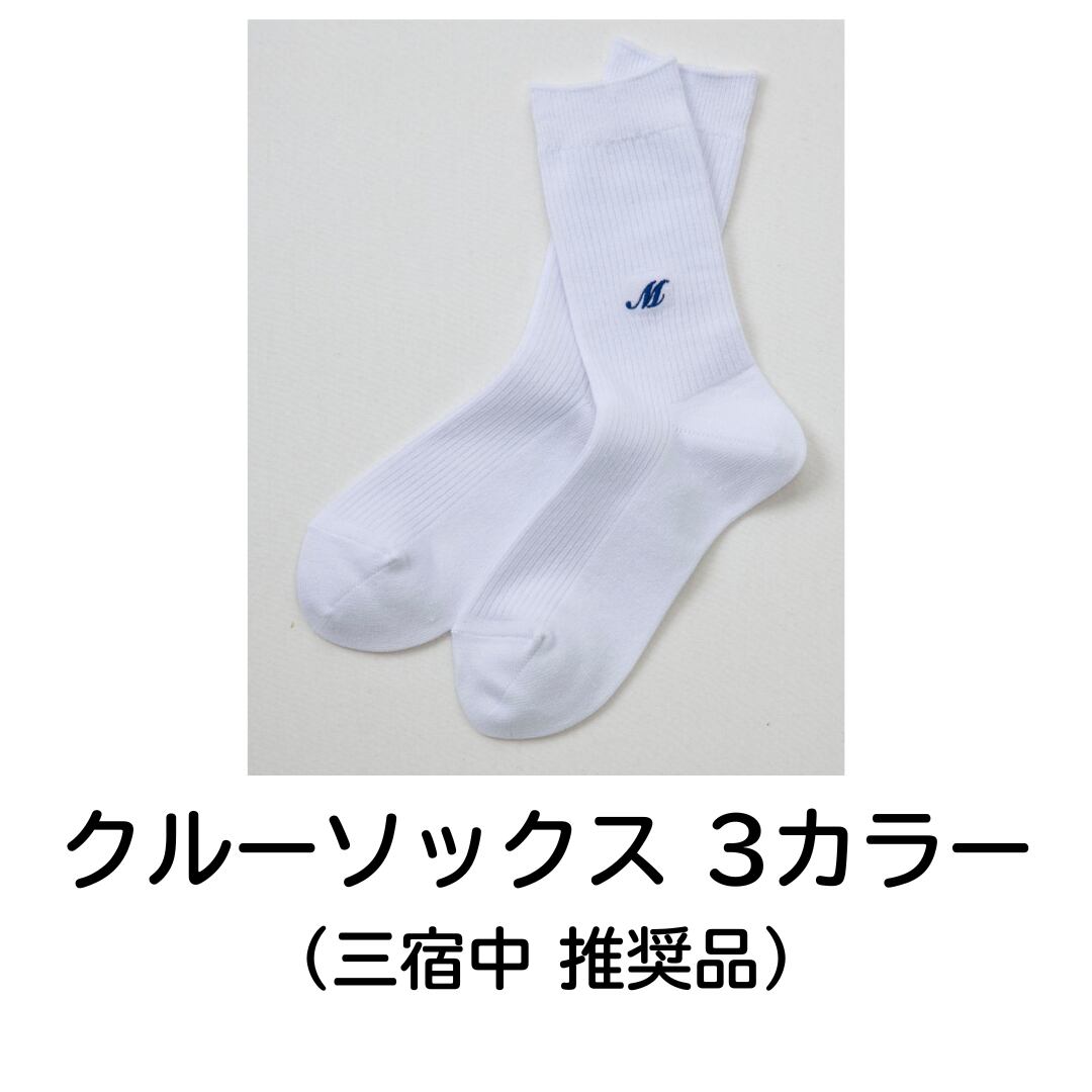三宿中学校の「M」の刺繍が入ったクルーソックス(ふくらはぎ丈靴下)です。